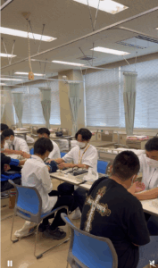 9時から本校で開始。学校の説明後はメンズ在校生(3学年全員)学内ツアー、看護技術体験を通して大警看のことを知っていただきました。