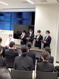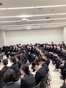 スタートは、司会担当4名の1年生が澤学校長を院長室から会場までご案内いたしました。