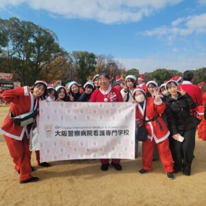 副学校長・教務課長・実習調整者3名も、毎年サンタの衣装で4キロのゴールを目指しています。